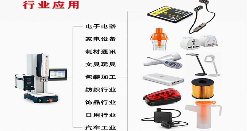 公司專(zhuān)業(yè)制造超聲波塑焊機(jī)、 高周波同步熔斷機(jī) 、超聲波口罩機(jī)、 超聲波切斷機(jī) 、超聲波無(wú)紡布縫合設(shè)備、 以及皮革沖孔機(jī)械等10多個(gè)系列100多種機(jī)型,同時(shí),還能為客戶量身定制各種非標(biāo)專(zhuān)用設(shè)備,充分滿足不同客戶對(duì)產(chǎn)品個(gè)性化需求。服務(wù)領(lǐng)域包括汽車(chē)、 電子、 醫(yī)療衛(wèi)生 、玩具 、服裝、 包裝、 辦公用品 、家居用品 、酒店用品等行業(yè)。  ...